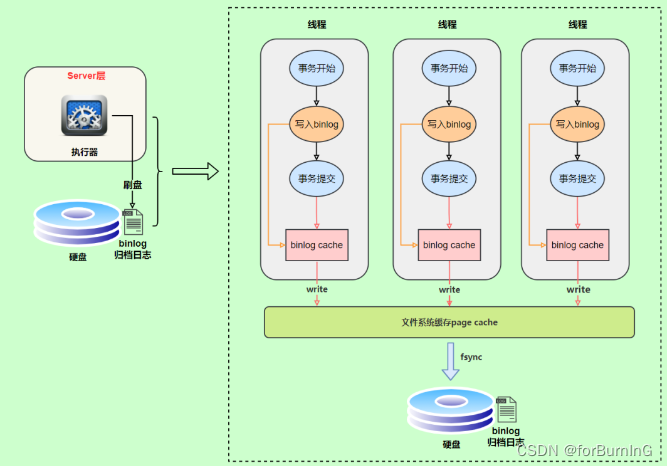 因为一个事务的binlog不能被拆开,无论这个事务多大,也要确保一次性写入,所以系统会给每个线程分配一个块内存作为binlog cache。