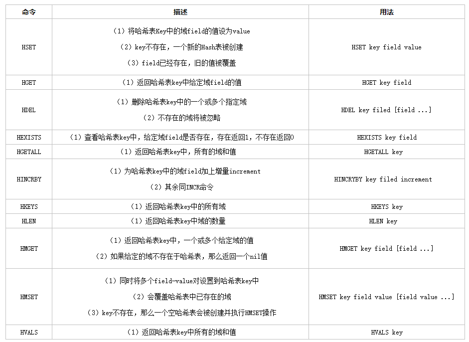hash 是一个键值对集合,是一个 string 类型的 key和 value 的映射表,key 还是key,但是value是一个键值对(key-value)。类比于 Java里面的 Map<String,Map<String,Object>> 集合。
