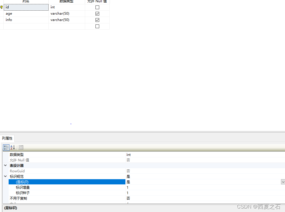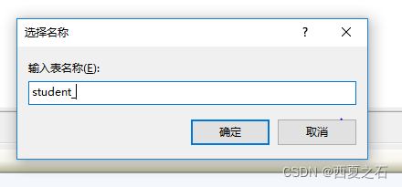 ctrl+s保存会出现以下界面,我的已经有了student所以我命名为student_,与此同时,需要设置表的属性中标识规范为‘是’,这个的作用是设置表可以自增。