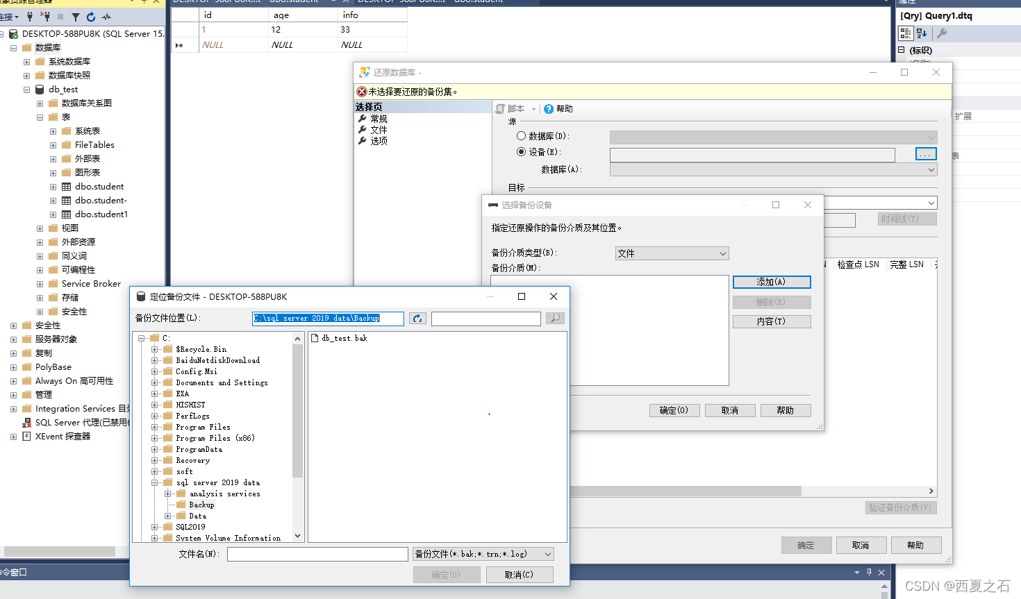在新创建的db_test数据库中找到表,点击右键,可以创建对应的新表,我创建了一个student表