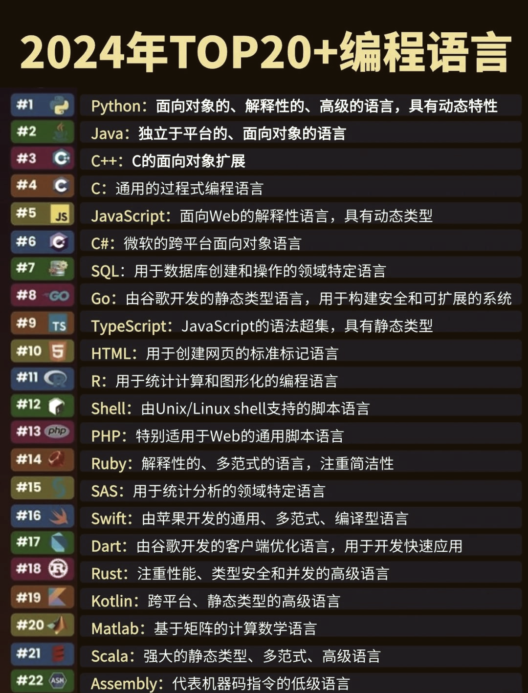 每种语言都有其独特之处,选择合适的编程语言取决于项目的具体需求、团队的技术栈以及目标平台等因素。随着时间的推移,新的编程语言不断涌现,同时旧的语言也在不断地更新和发展,以适应变化的技术环境。