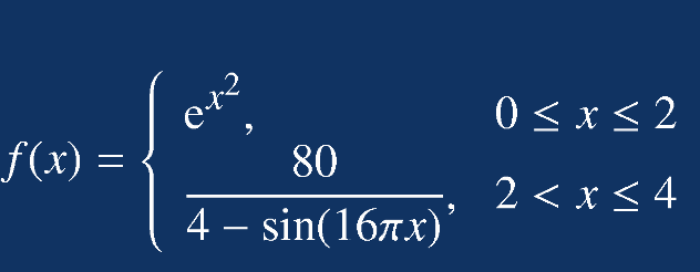 f=@(x)exp(x.^2).*(x<=2)+80./(4-sin(16*pi*x)).*(x>2);