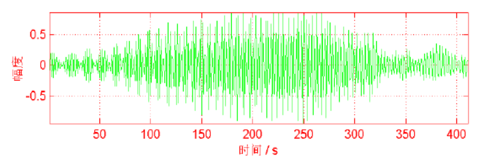 此图为鸟鸣声信号时域波形,信号能量在时间轴上的分布