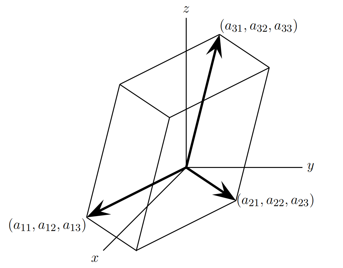 综上可得矩阵A的行列式与n维箱子的体积相等,在网络安全中此结论是很有用的,来看一个直观的图形: