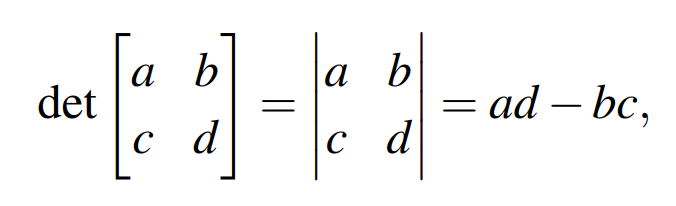 以2行2列的矩阵为例,其行列式的计算非常简单,如下: