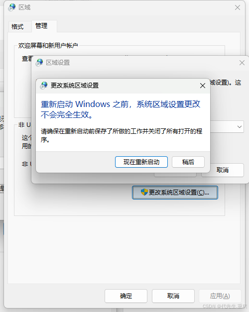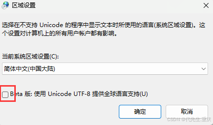 3、区域设置下面-Beta版:使用Unicode UTF-8提供全球语言支持