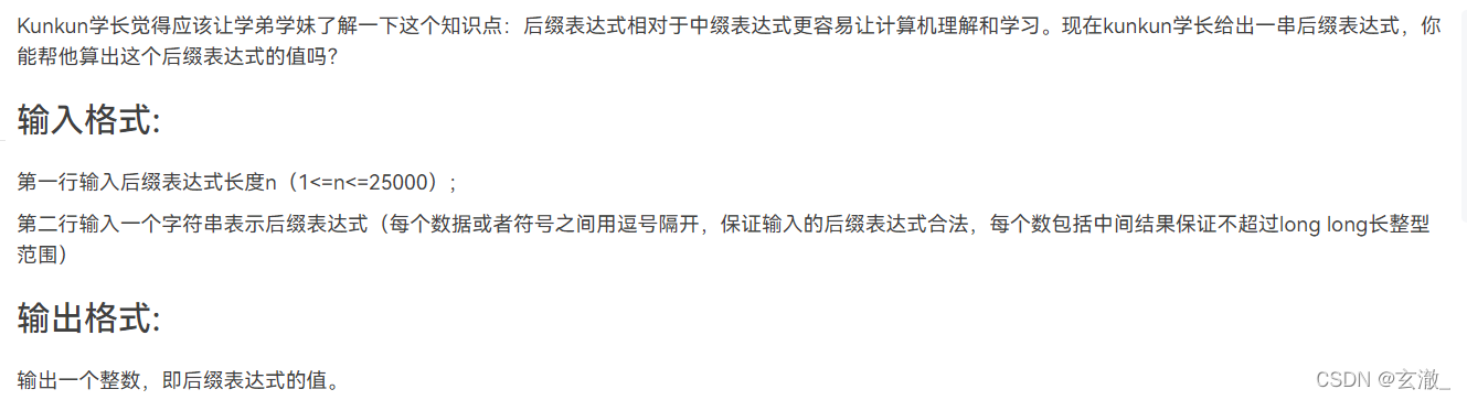 现在kunkun学长给出一串后缀表达式,你能帮他算出这个后缀表达式的值吗?