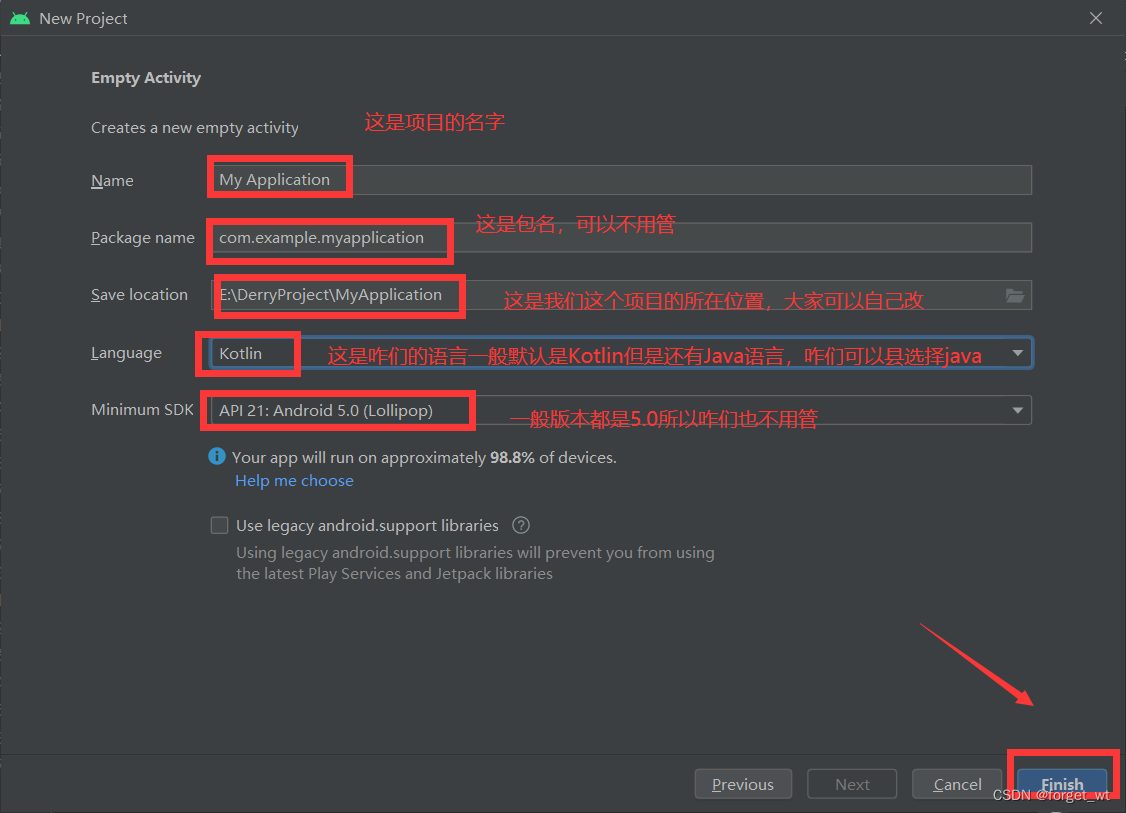 然后就是项目的名字路径,根据自己的来选择修改,然后点击Final创建这个项目