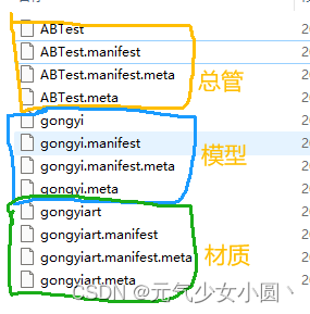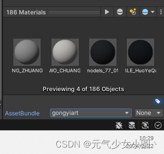 1.先准备一个需要打包的资源(作为测试我把预制体及模型 与材质球及贴图分两个包打包)