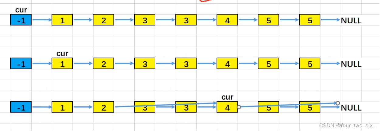 if(p->next->val==p->next->next->val){