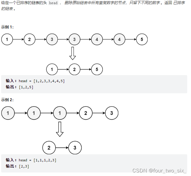 这段代码实现了一个C++函数,用于删除链表中相邻的重复元素。它创建了一个新的头节点,然后遍历链表,当遇到重复元素时,跳过这些节点;否则,移动指针到下一个节点。最后返回新链表的头节点。