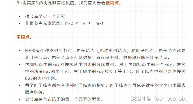 在B树中,你可以将键和值存放在内部节点和叶子节点;但在B+树中,内部节点都是键,没有值,叶子节点同时存放键和值。
