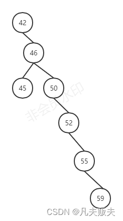 二叉树的定义规则比较简单,查询的思想就是二分查找法,有些情况下查找效率比较高,如图下:树的高度比较平衡、低,有些情况下会变成顺序查找,效率就不高了,如图二:根限情况下,二叉查找树变成了一个单向链表了。