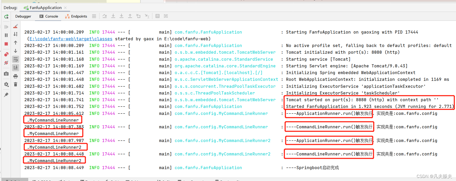 4、CommandLineRunner和ApplicationRunner触发执行时机是在Spring容器、Tomcat容器正式启动完成后,可以正式处理业务请求前,即项目启动的最后一步;