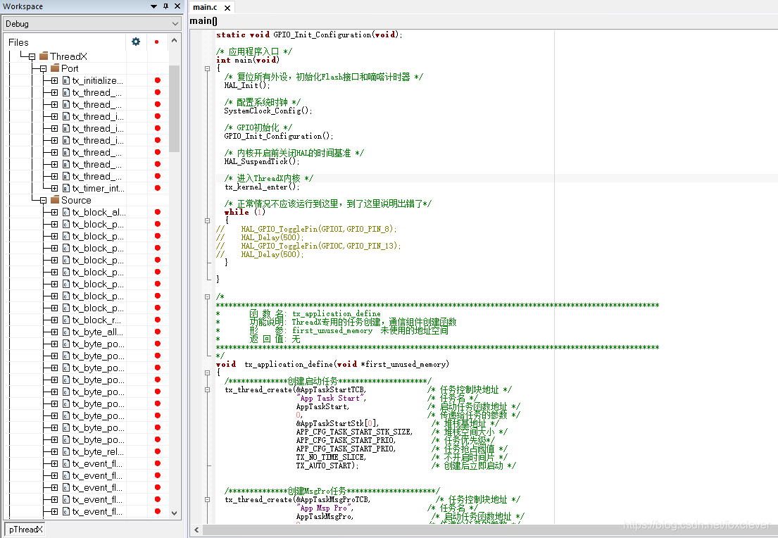 我们已经说过了tx_application_define用于任务的创建,它的具体内容需要我们来实现,接下来我们就来实现tx_application_define这个函数。