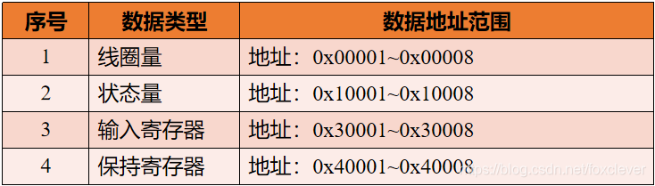 我们知道从站是数据的生产者,对于Modbus协议来说有四类数据:线圈、状态、输入寄存器和保持寄存器。所以在从站中我们要为这四种数据定义相应的地址,以便主站能够对应的访问。所以设计一个从站我们先来设计它的数据地址,在我们的例子中我们规定如下: