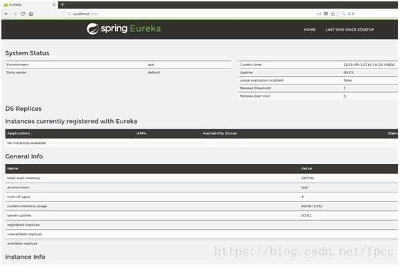 这样就可以启动服务注册的程序了,点击运行,即可打开了一个注册的服务。在浏览器上输入:http://localhost:8761