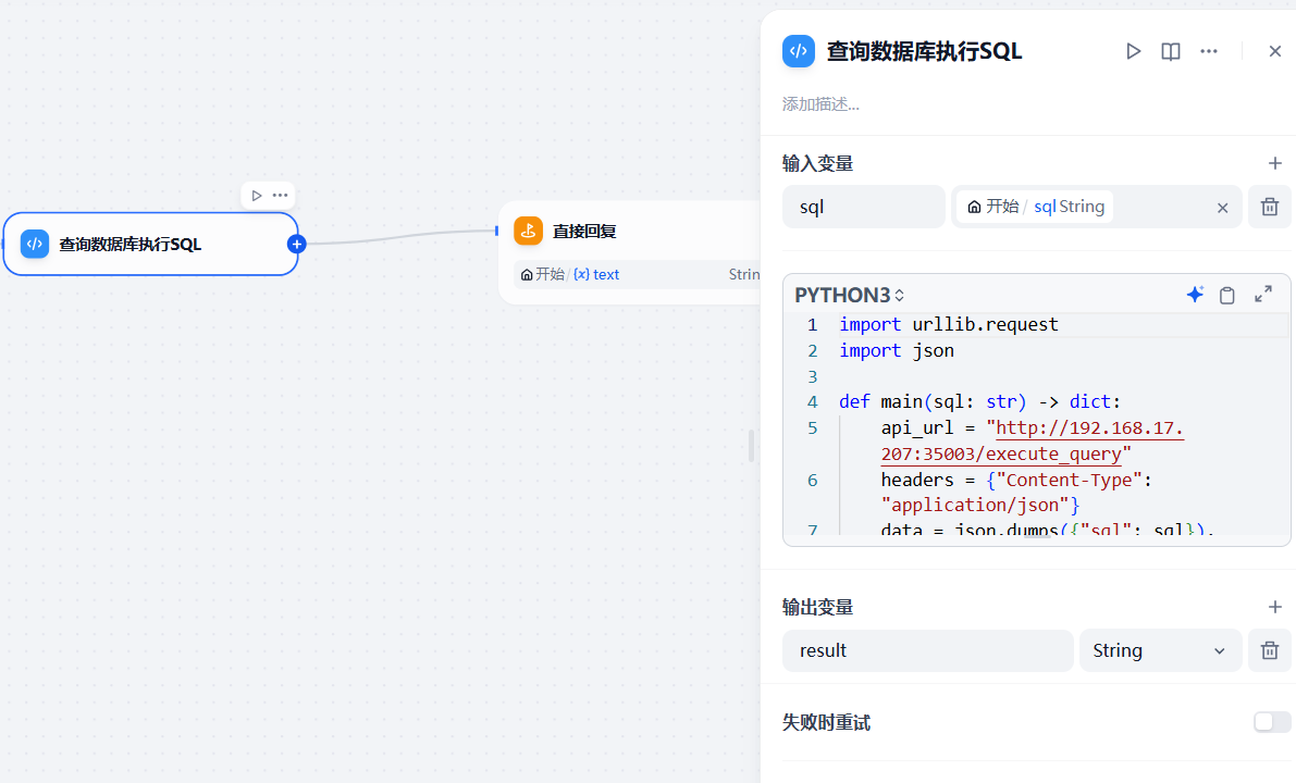 在原有配置上只保留开始-执行-结果,参数需要有相应调整