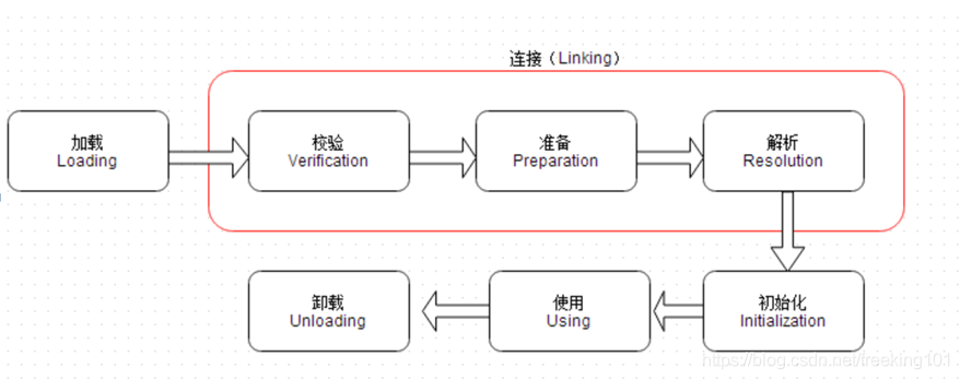 - (5)卸载:使用完了,java虚拟机进行清理。