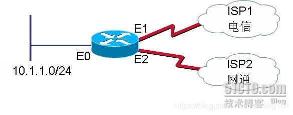 1) 当内部用户所需要的资源在ISP1时,需要从E1端口进行通讯;当内部用户所需要的资源在ISP2时,需要从E0端口通讯。