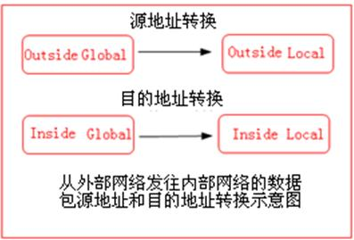 相反,当外部网络用户访问内部网络时,所进行的是“外部本地地址”和“外部全局地址”之间的转换。