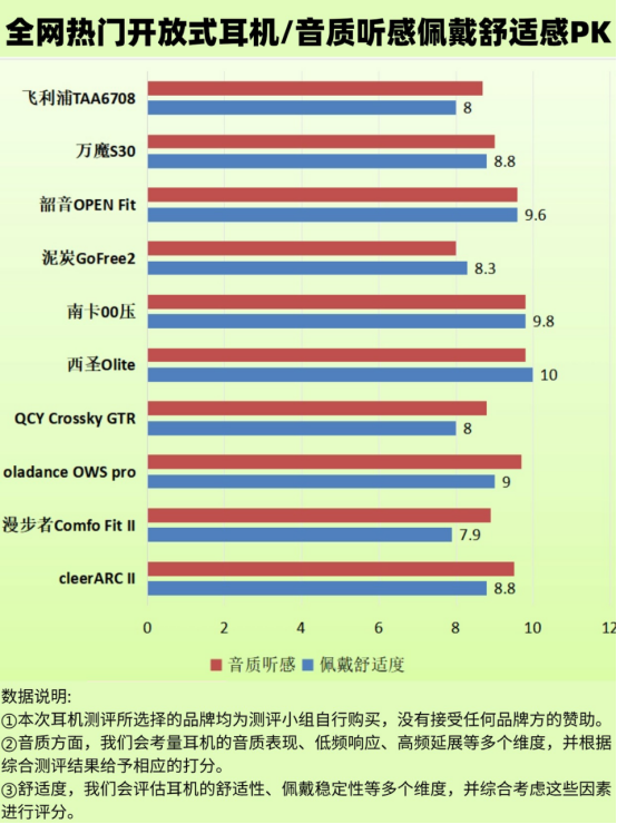 但对于刚入门的朋友来说,选择起来确实有点难。不过没关系,我已经帮你整理好了。下面这张图里有专业机构对开放式耳机的测评数据,还有我推荐的5款耳机,都是市面上的佼佼者,一起来看看,让你的选择不再难!