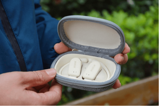 这款耳机设计上采用了开放式、不入耳的佩戴设计,耳挂材质采用TPEE软塑材质+硅胶外皮的结合,使得耳机佩戴上耳较为舒适,能提供舒适的佩戴体验,但运动状态下使用的时候不会像静态那样稳定。音质方面,搭载14.2mm DLC大单元,低音听感上明显加强了。续航方面,耳机在满电的情况下可以连续聆听10小时音乐,加上充电盒的时间,总体续航可达到30小时。