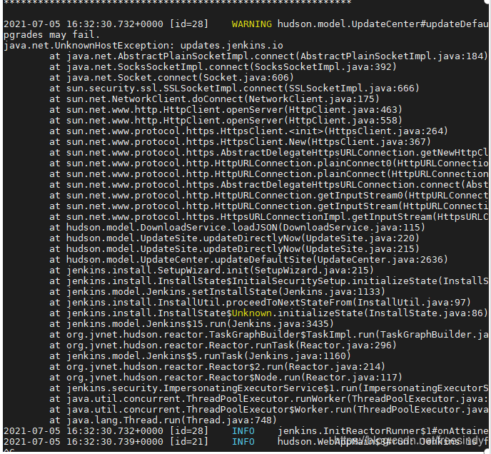1.启动的时候报错:WARNING hudson.model.UpdateCenter#updateDefaultSite: Upgrading Jenkins. Failed to update the default Update Site 'default'. Plugin upgrades may fail