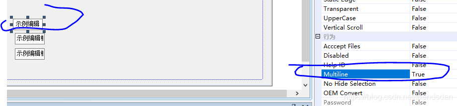 3. 用来转移焦点的Edit control控件的属性 Multiline 设为True