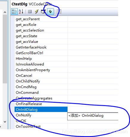 2. 在新建的Dialog类中,增加 Windows 消息处理INITDIALOG,但是不太一样的是 要在重写里面添加