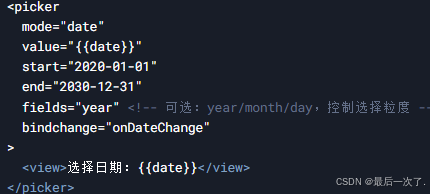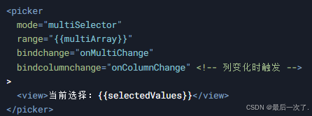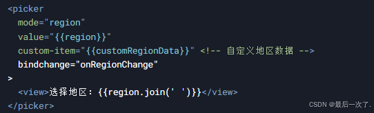微信小程序自带的滚动选择器。一共有五种方式,通过mode来区分,分别是:普通选择器、多列选择器、日期选择器、事件选择器和省市区选择器