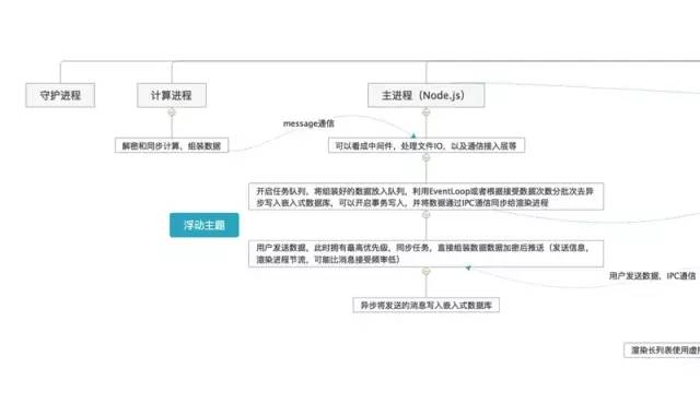 这款应用的核心竞争力,是20万人超级群,那么数据量很大,大批量渲染压力和频繁加解密计算耗时、频繁数据库写入压力都是不可避免的,那么我们的Node.js擅长异步非阻塞,以及前端渲染进程的异步就显得尤为重要