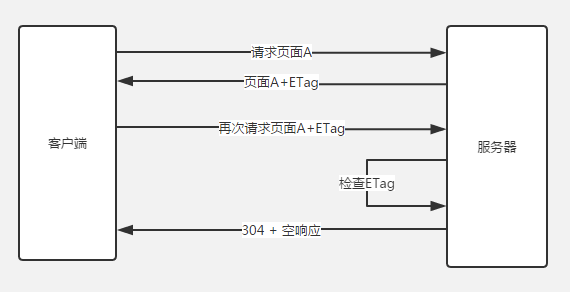 根据实体内容生成一段hash字符串,标识资源的状态,由服务端产生。浏览器会将这串字符串传回服务器,验证资源是否已经修改,如果没有修改,过程如下: