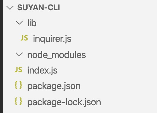 此时整个文件目录结果如下,lib 中主要放代码的具体实现逻辑代码,inquirer 主要是为了演示用户输入: