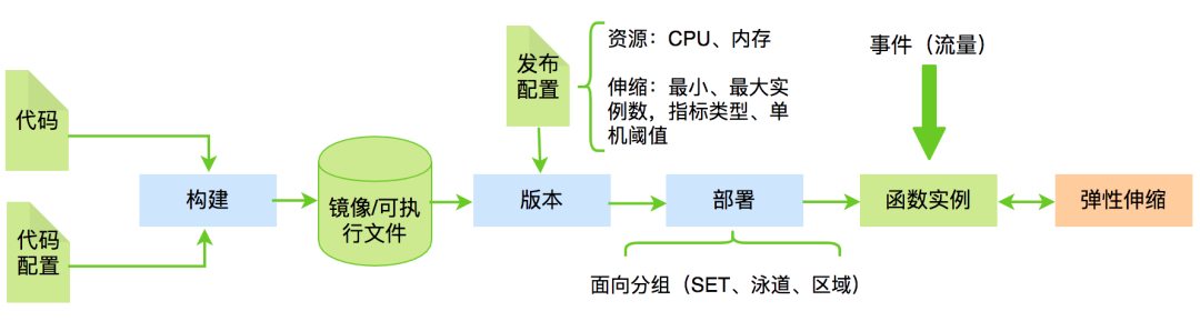 伸缩:根据函数实例的流量以及负载等信息,来进行实例的弹性扩缩容。