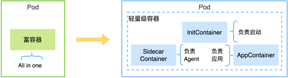 在美团的技术体系中,由于多年的技术沉淀,很难在一个纯粹的容器(没有任何其他依赖)中运行公司的业务逻辑。因为公司的容器中沉淀了很多环境或服务治理等能力,如服务治理的Agent服务以及实例环境配置、网络配置等。
