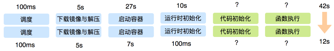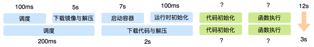 冷启动是指在函数调用链路中包含了资源调度、镜像/代码下载、启动容器、运行时初始化、用户代码初始化等环节。当冷启动完成后,函数实例就绪,后续请求就能直接被函数执行。冷启动在Serverless领域至关重要,它的耗时决定了弹性伸缩的速度。