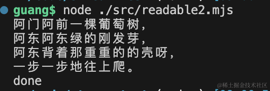 duplexStream.write('阿门阿前一棵葡萄树,');