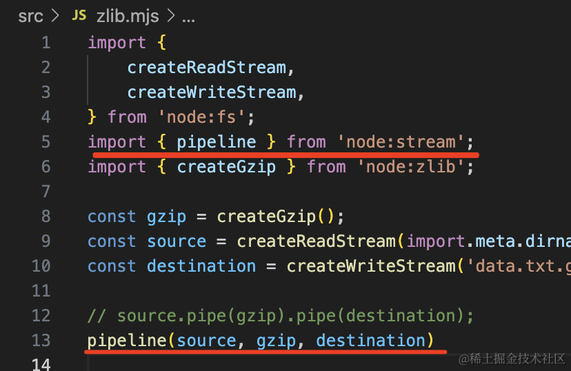 这里的多次 pipe 也可以用 stream 的 pipeline 的 api 简化: