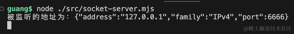 console.log('被监听的地址为:%j', address);