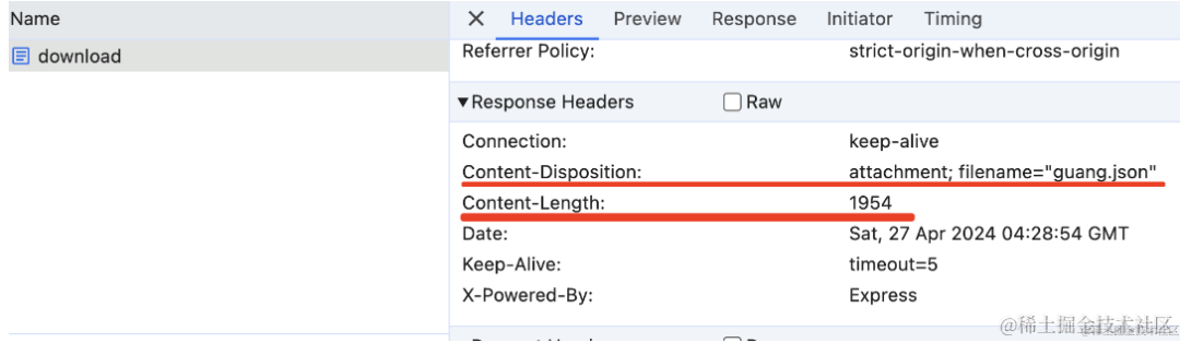 结果一样,但是因为现在是流式返回的,并不知道响应体的 Content-Length。