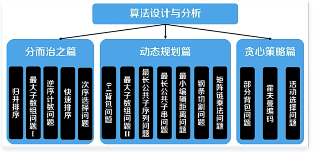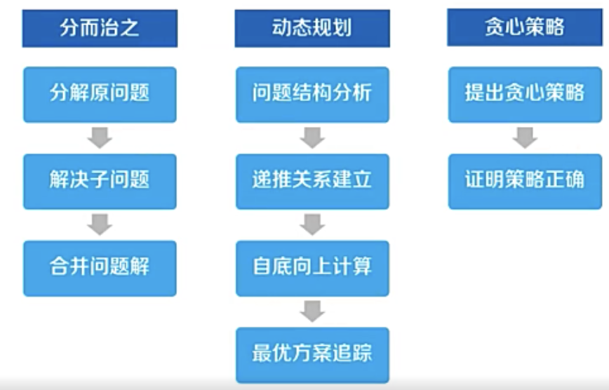 其中关于分而治之、动态规划、贪心策略三者的求解思路如下: