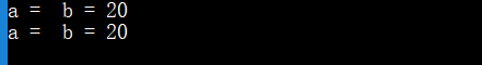 cout<<"a = "<<" "<<"b = "<<b<<endl;