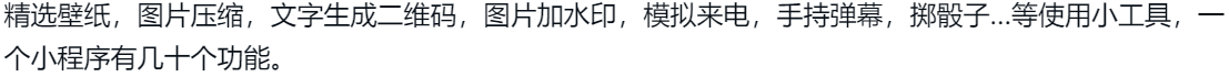 工具箱源码,趣味工具微信小程序源码,皮皮趣味小工具小程序源码,支持功能非常多,无需授权,有兴趣自行去安装体验吧,其它就没什么好介绍的了。