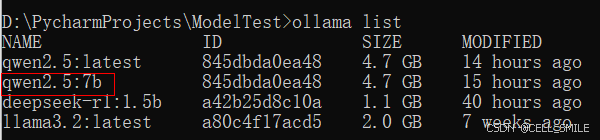 使用ollama拉取模型,此处采用qwen2.5:7b模型进行测试。