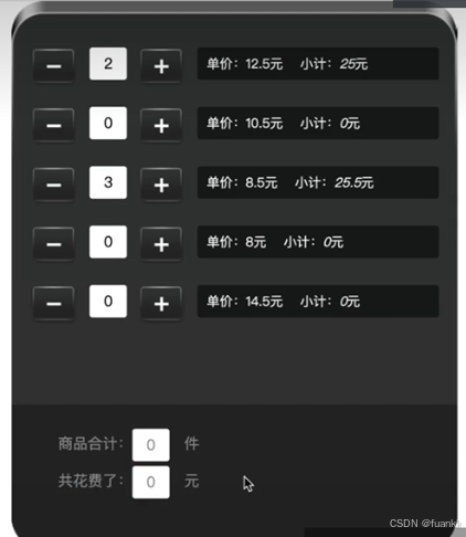 // 得到每项商品的小计元素的集合,用于计算总费用。