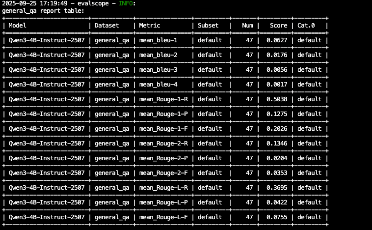 微调完成后,用同一套数据分别测试原模型和微调后的模型,直接对比差异