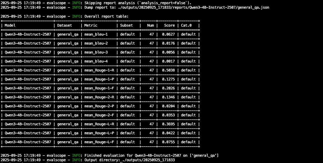 - 作用:存放评估输出结果的目录,包括 JSON 报告和日志。