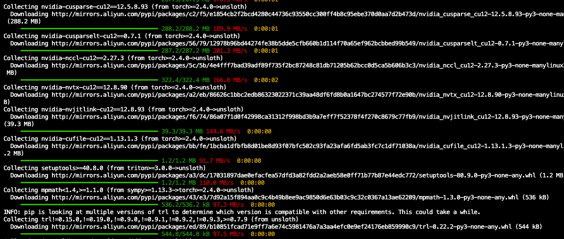 --user:将内核安装到当前用户的家目录下,避免需要系统权限。--name unsloth:指定内核在内部使用的名称(通常与 Conda 环境名一致)。--display-name "Python unsloth":指定在 JupyterLab 界面上显示出来的、供用户选择的可读名称。