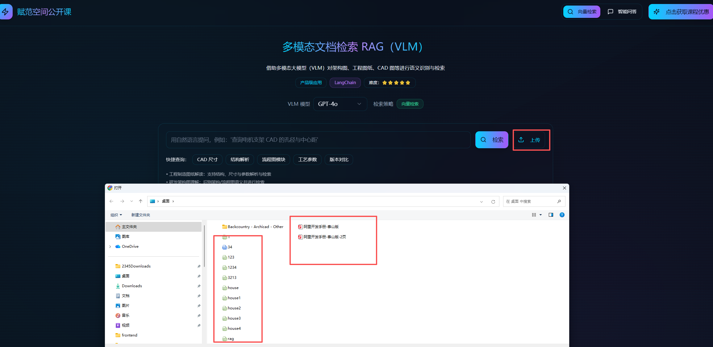 核心功能三:支持实时上传多模态PDF及CAD、工程图纸和复杂架构原型图,并直接对文件内容进行提问,实现“以文搜文”;